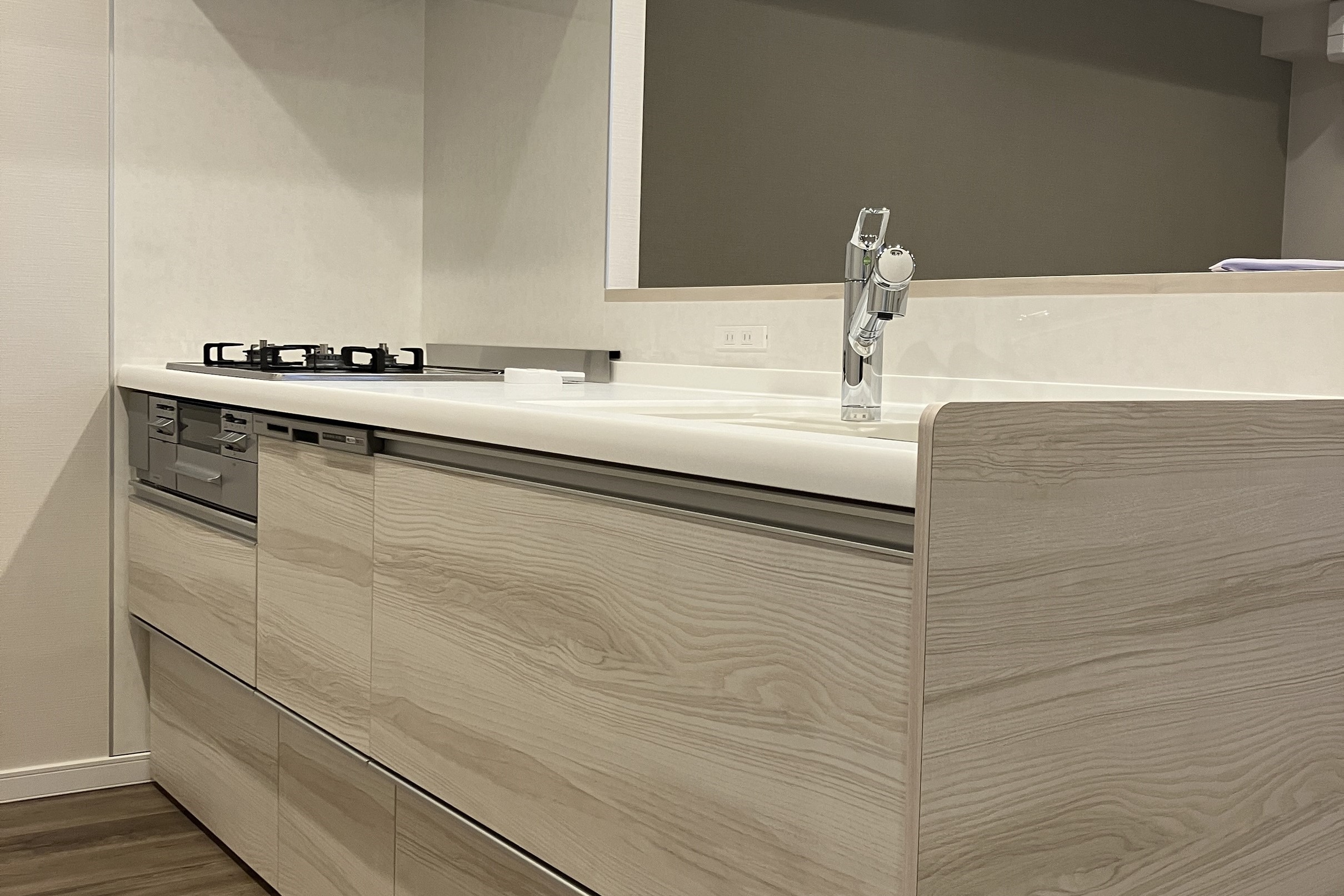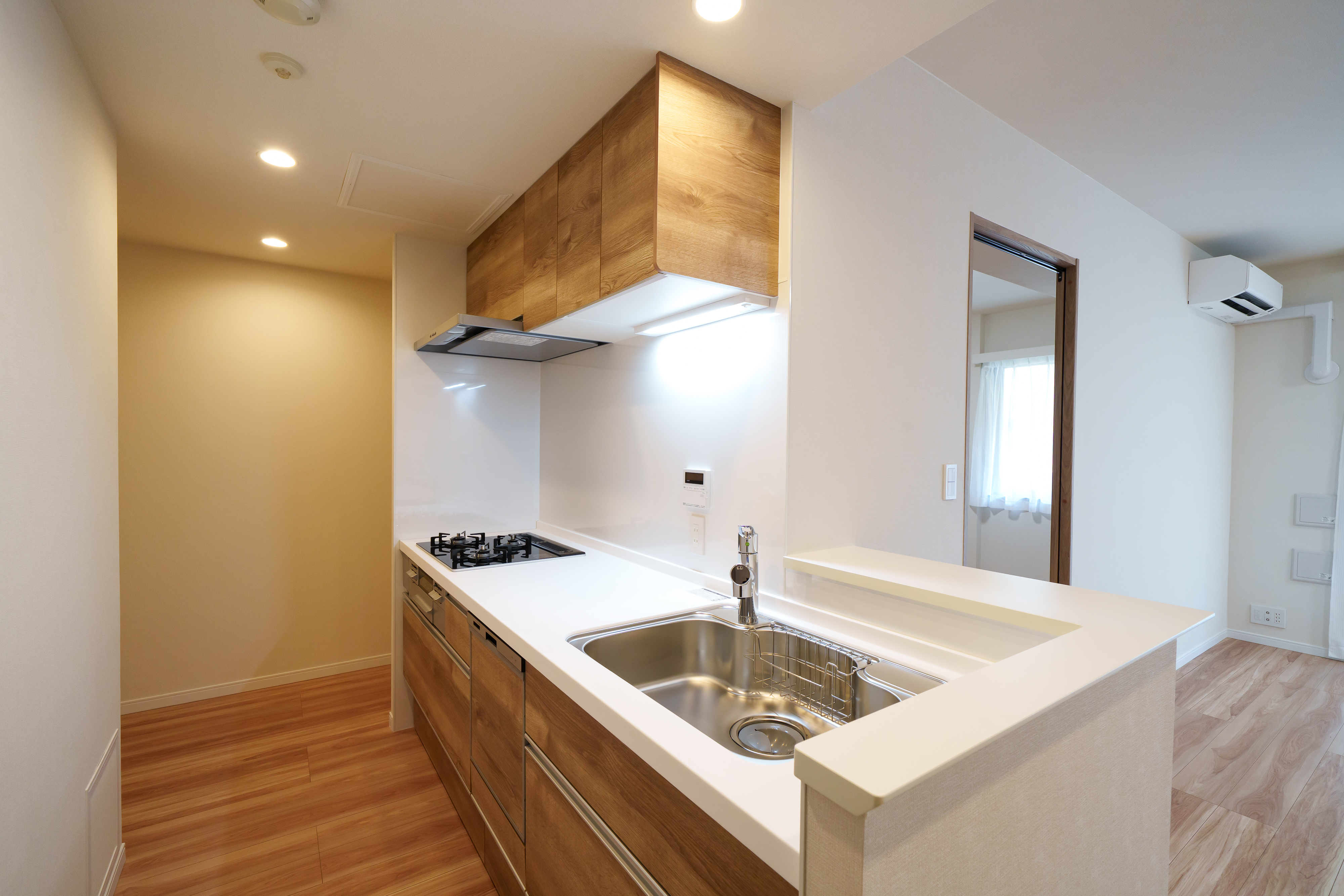 カウンター付きのオープンキッチンで